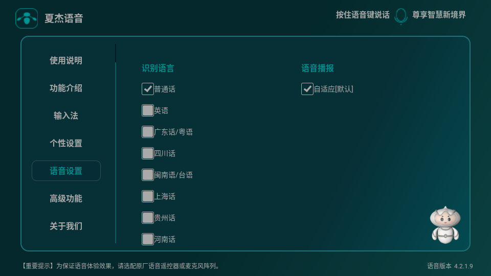 夏杰语音重新定义电视交互维度,以方言识别打破语言壁垒,用AI中枢升级客厅娱乐体验。其革命性输入系统和跨端协同能力,不仅解决行业痛点,更构建起家庭智能生态闭环,是智能电视升级的里程碑式产品。