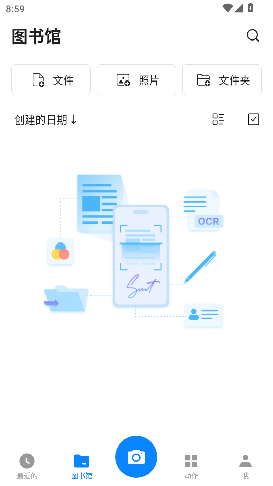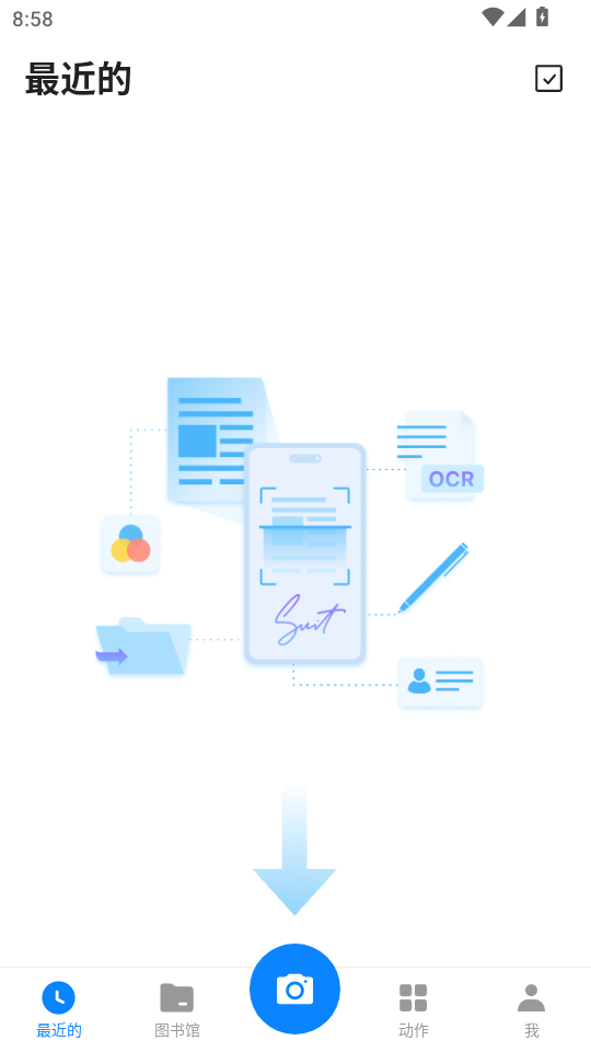 2、拍摄页面可以选择OCR、书、文档等,软件会自动识别,并做出优化调整