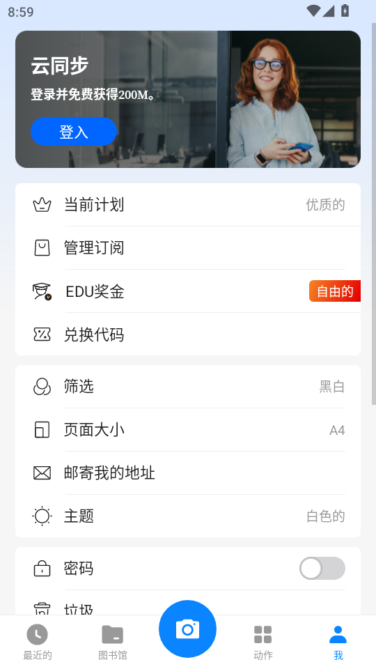 极简交互设计:主界面仅保留核心功能入口,扫描模式切换通过左右滑动实现,云存储支持Google Drive/Dropbox/OneDrive三端同步,文件备份效率提升50%。
