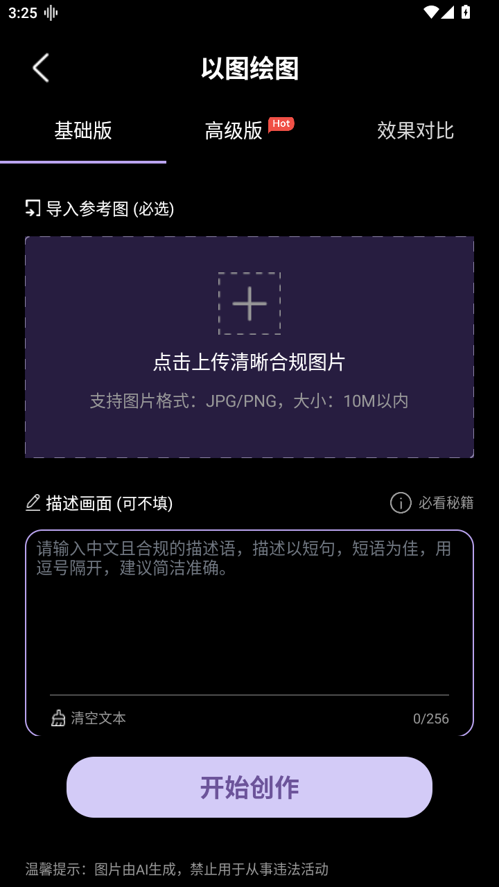1、进入软件后,可以看到有文字生画和以图绘图两个功能,大家根据需求选择。