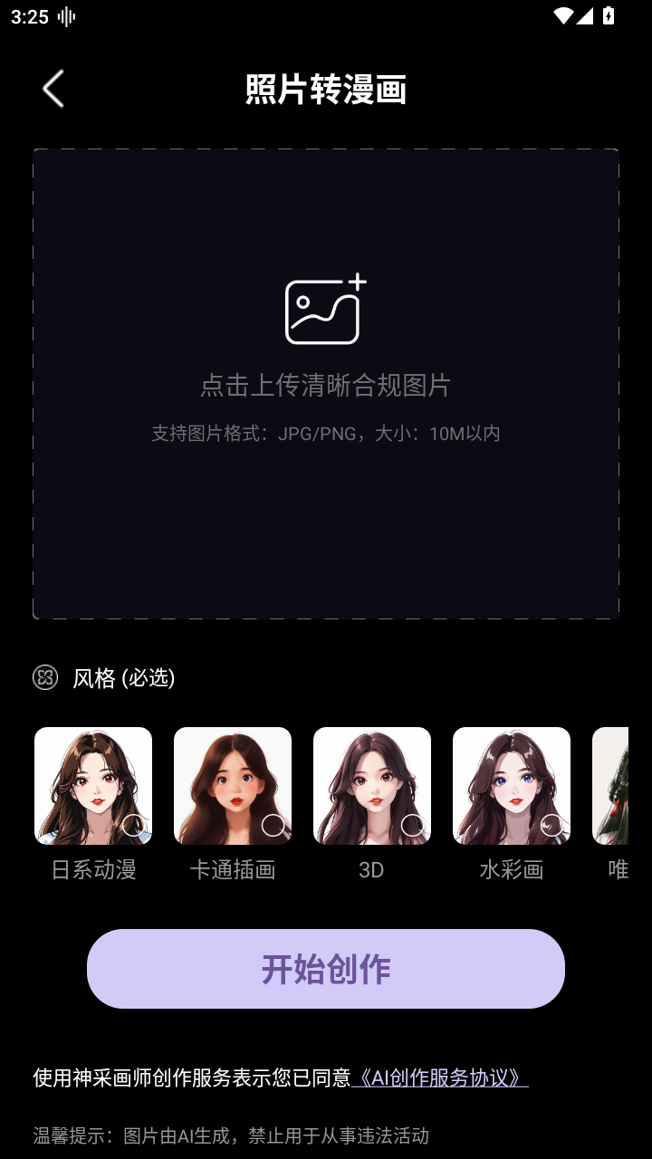 个性化的照片转化功能:用户可以将自己的照片转化为各种风格的漫画或艺术作品,如日系动漫、清新日漫、卡通插画等,为用户的个人形象增添更多趣味和个性。