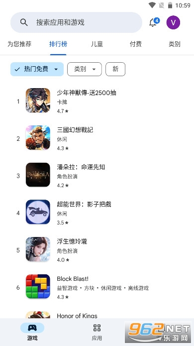 5、【排行榜和类别】用户可从一系列排行榜中发现最热门的应用和游戏以及热度上升最快的应用和游戏