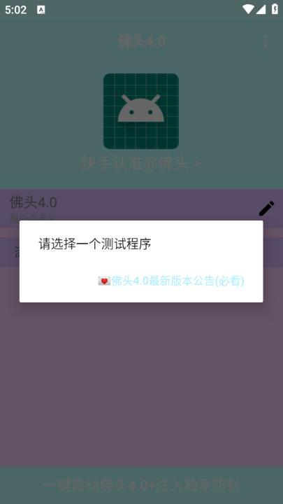 打开佛头弱网app,点击查看4.0版本公告