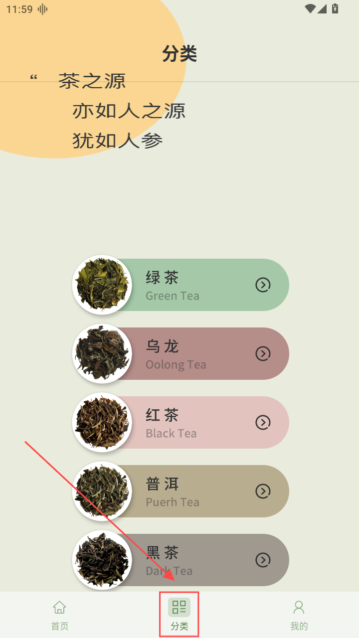 3、进入分类可以看到不同的茶类。