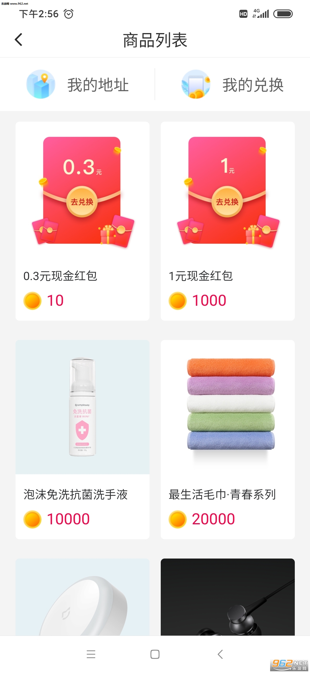 5.首次10积分兑换0.3元,后续1000积分兑换1元,也可以兑换实物商品