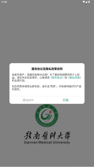 打开赣医移动学工app,点击同意相关协议