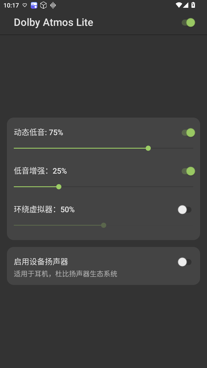 《Dolby Atmos Lite(杜比全景声青春版)》是一款值得尝试的音频优化工具,无需高端设备或复杂设置,它以极小的体积和便捷的操作方式为用户带来了显著的音质提升体验。如果您对音质有较高要求,但又不想花费太多时间和金钱在硬件升级上,那么这款APP无疑是一个不错的选择。