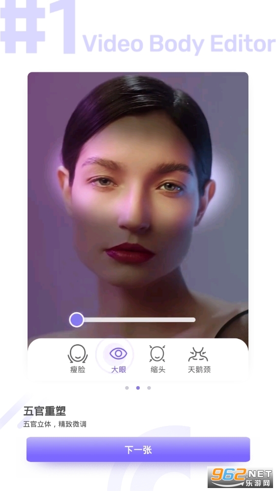 3、轻松修饰和重塑视频中的脸部,自然放大双眼,拥有大眼睛,完美重塑鼻子,轻松高鼻