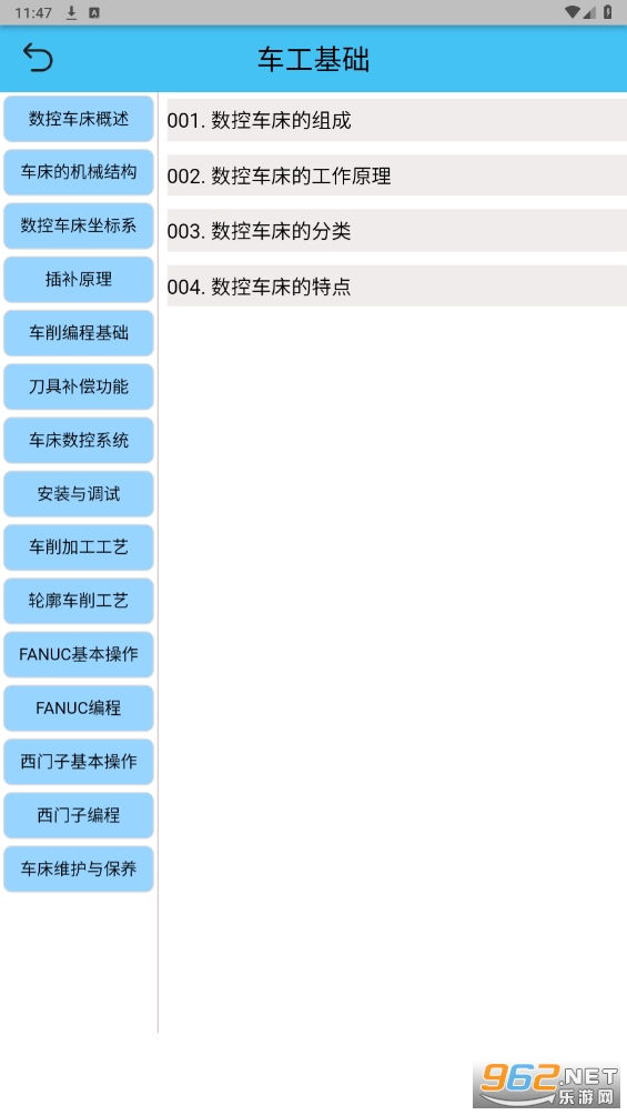 维护与故障、机床操作、数控代码、软件操作、金属常识、热处理、刀具知识、机床知识、量具知识、制图知识、工艺知识、基本要求、加工准备、数控编程、零件加工、