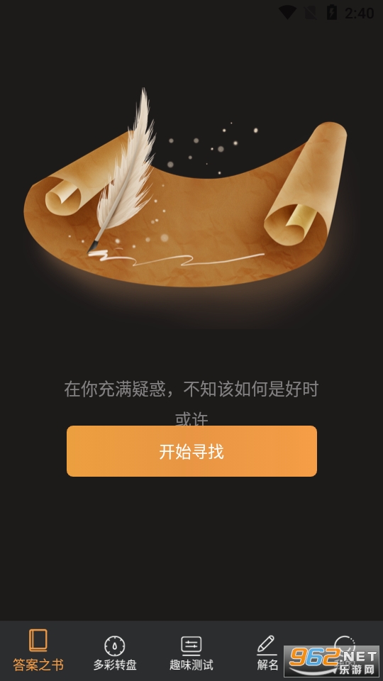 《答案之书》是一款问题解答与趣味测试的应用程序。无论您是需要解决问题、寻找答案,还是想玩一些有趣的测试,这款应用都能帮助您。它提供了各种各样的答案,你只需要拿出答案之书,随时即可寻找答案,为你的内心答疑解惑,还有超多趣味测试等着你来体验!