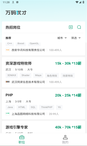 万码优才app是技术人才求职的得力助手,值得推荐!界面简洁明了,操作便捷,让求职者能够轻松上手。平台提供的职位信息丰富多样,且每日持续更新,满足了不同技术人才的求职需求。
