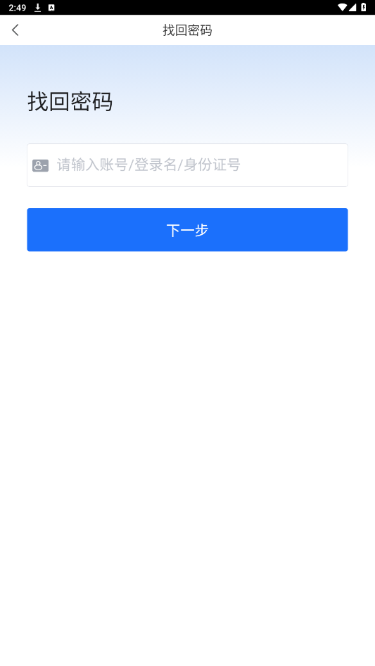 打开软件后,输入身份证号码或者账号,密码,点击登录