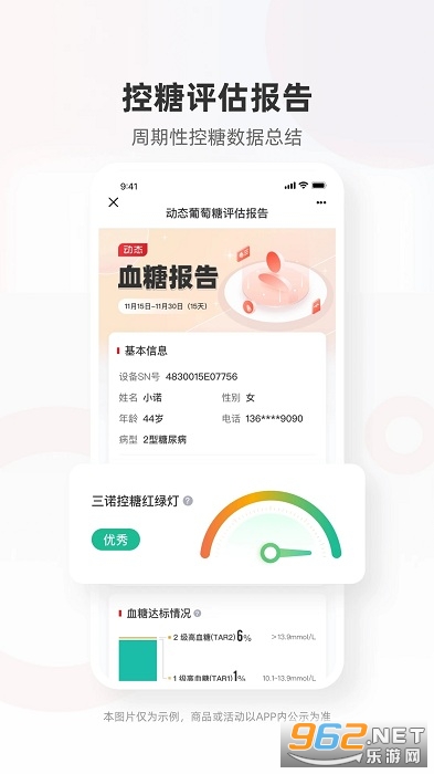 使用三诺健康app可以全面评估血糖变化、达标时间、高/低血糖的发生等情况,为精细化管理糖尿病提供丰富、可靠的数据,长期管理可改善糖化血红蛋白水平、有助减少心血管病的发展、降低低并发症发病率。