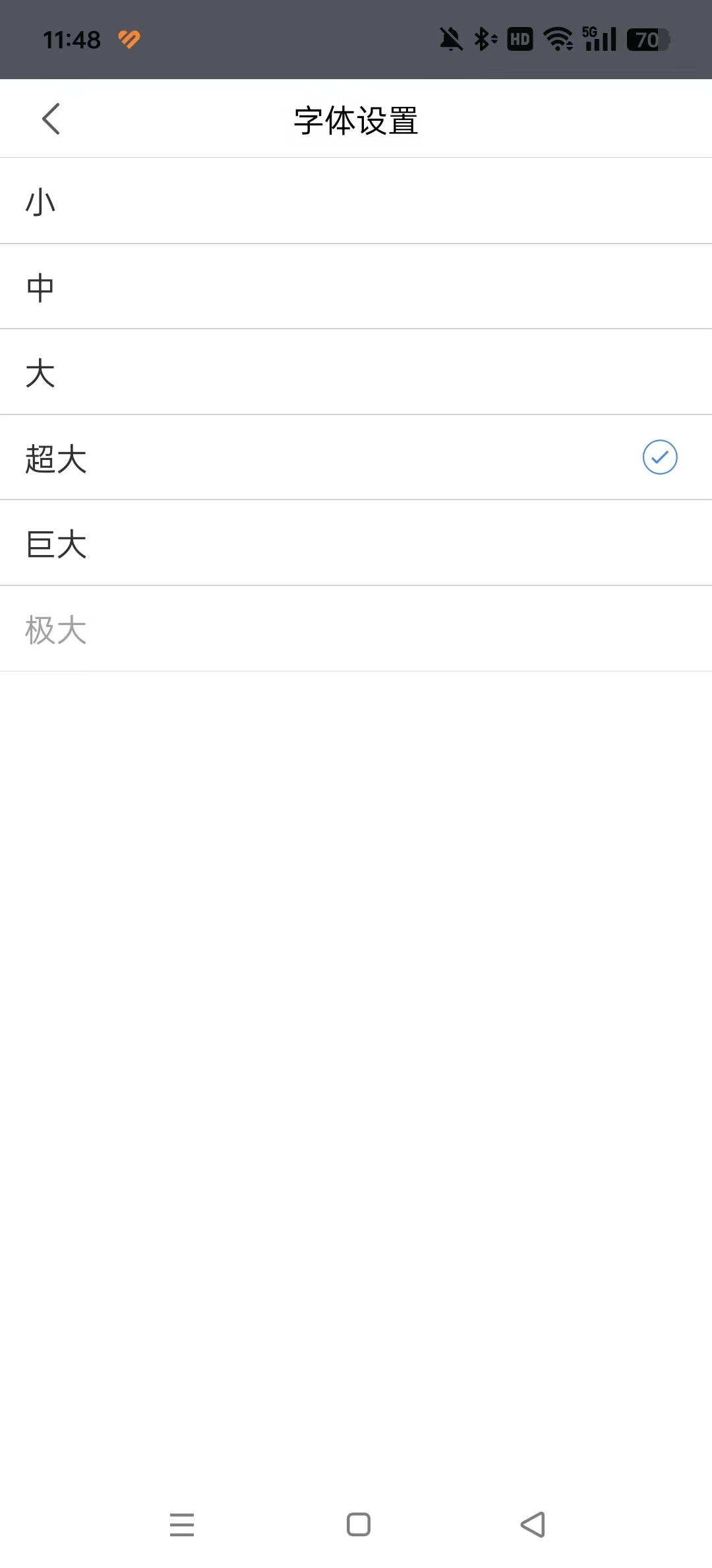 3、根据个人阅读浏览习惯进行设置调整,选择合适的字号。