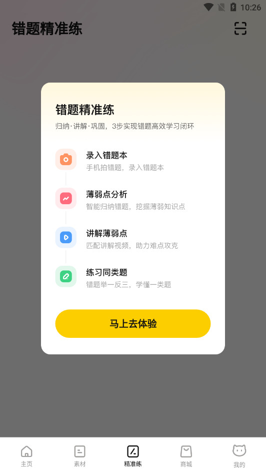 内置18亿题库,支持同步听学资源和错题本管理功能。
