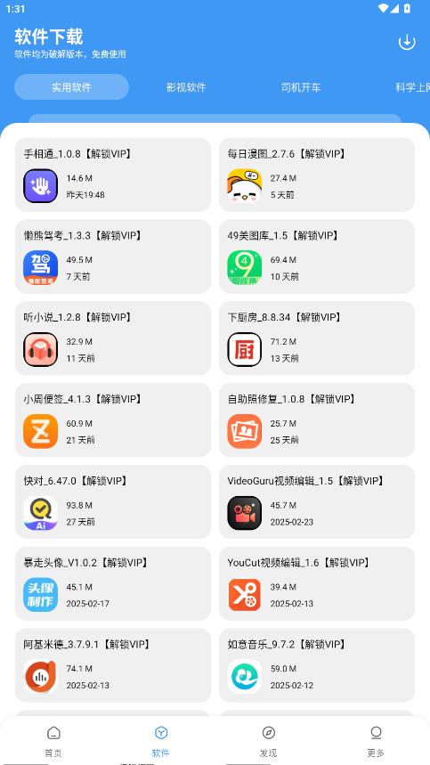 每天这里都会更新大量的破解软件,涵盖到生活中各个方面,让你可以用破解软件实现所有使用需求,白嫖党的福音;
