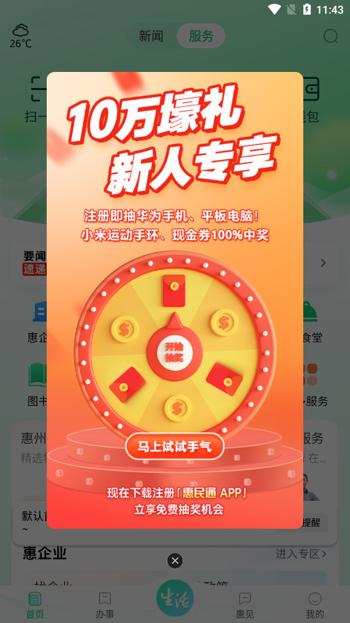 聚合全市大型文体活动报名以及政府消费券、政策红包等惠民福利,不定时免费派送演唱会、文艺演出、景区门票等福利,用户还可在“惠民通”平台上看新闻、享服务、集积分、换大礼。
