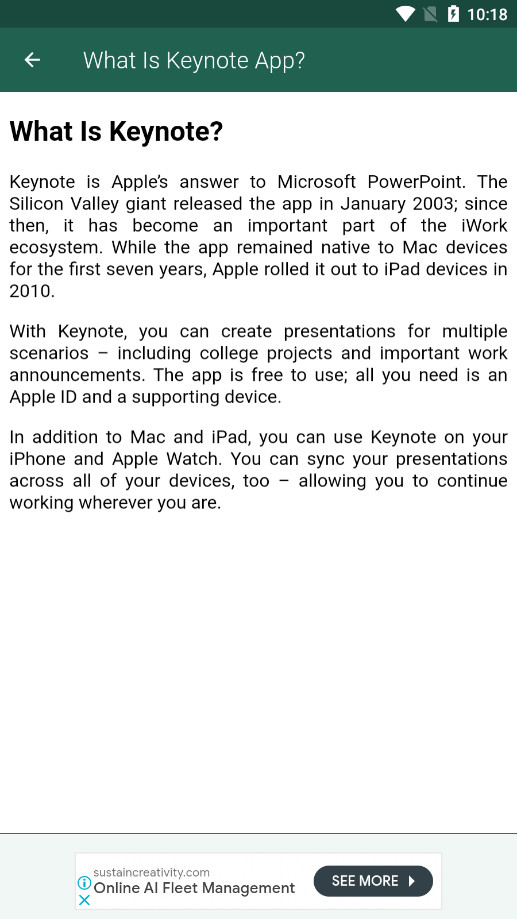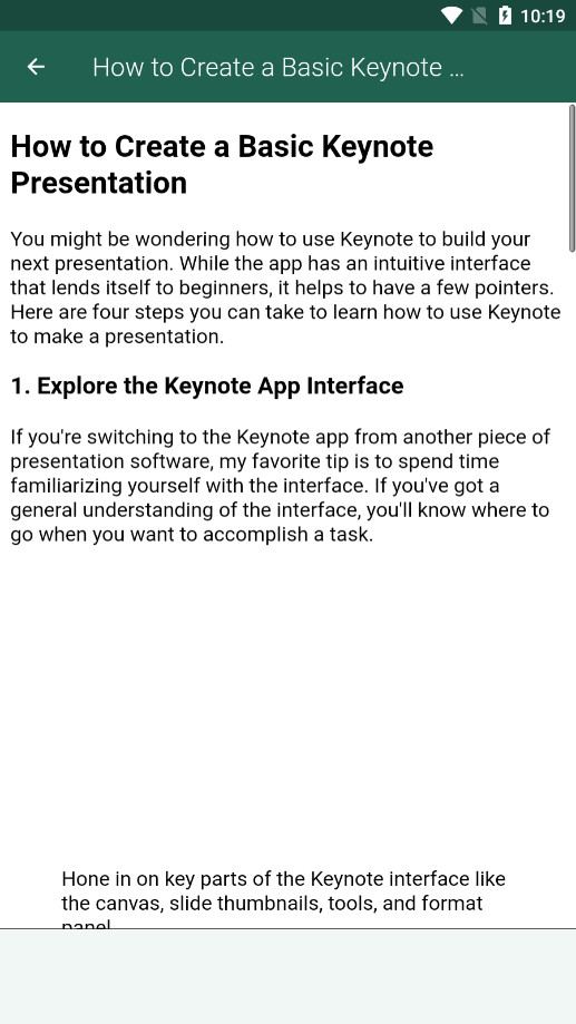 3.通过使用Keynote应用程序获取Android建议,可以轻松找到Keynote应用程序中的功能。