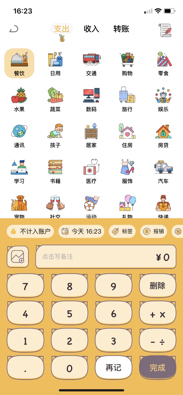 记账模式:支出、收入自由定义,记账如此轻松