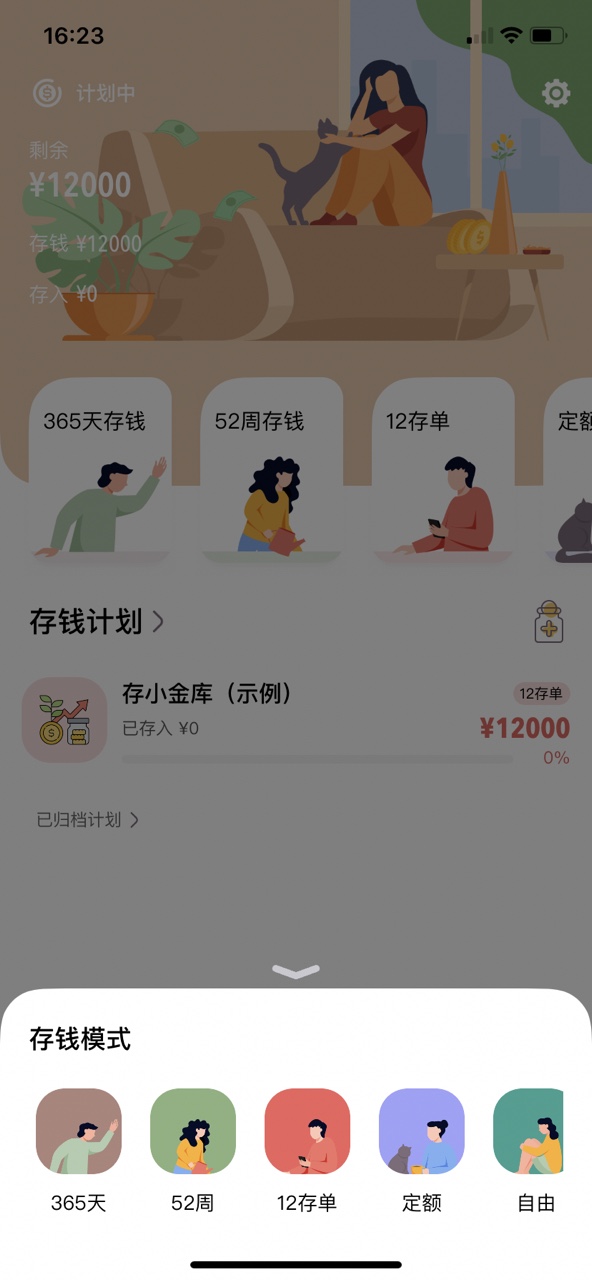 ◆ 懒猫存钱内置了6种存钱模式: