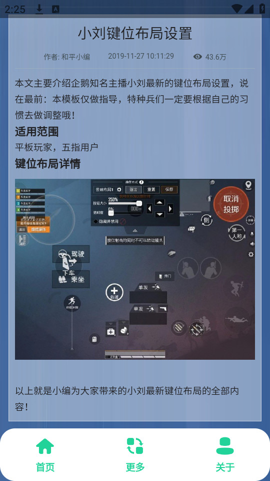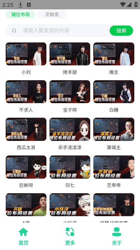 进入之后再首页直接点击你需要的键位布局或者灵敏度,直接点击就能够查看