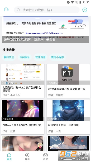 用户下载酷玩社区,酷玩APP,酷玩官方网站这款软件之后,不需要注册账号登陆,可以直接去到你所需要的工具版块区进行浏览下载,如果你也是一名资源分享达人,也是可以在其中分享你自制的一些实用小工具软件,方便大家使用的同时,也提高一下你的知名度!