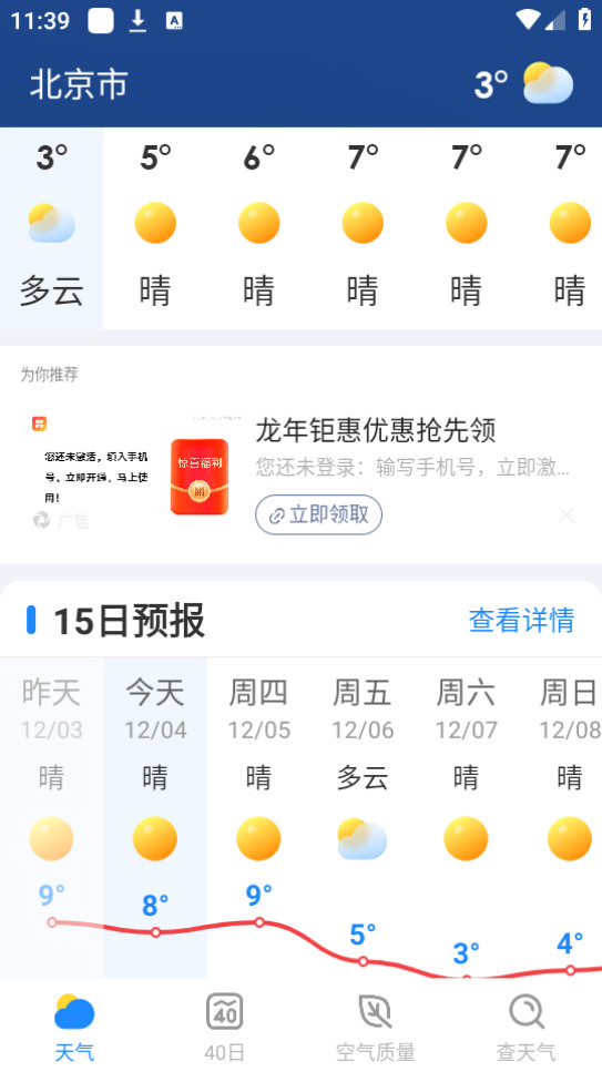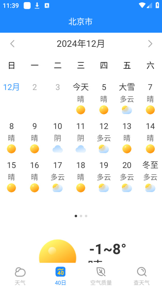 【15天天气预测】预知未来15天天气,提前预备适宜衣物。