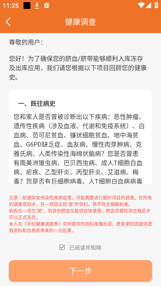 下载安装并打开北京市脐血库app,点击同意