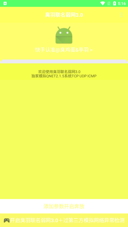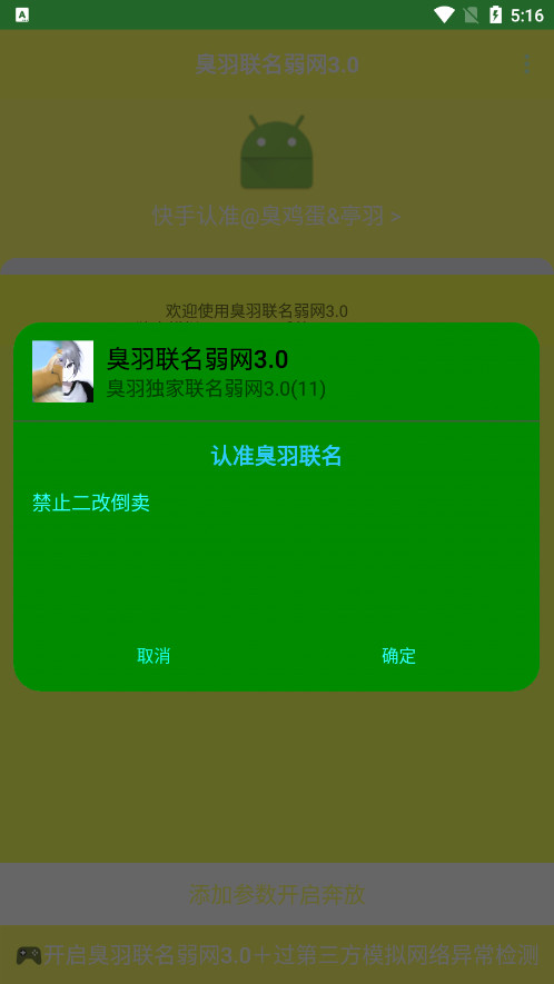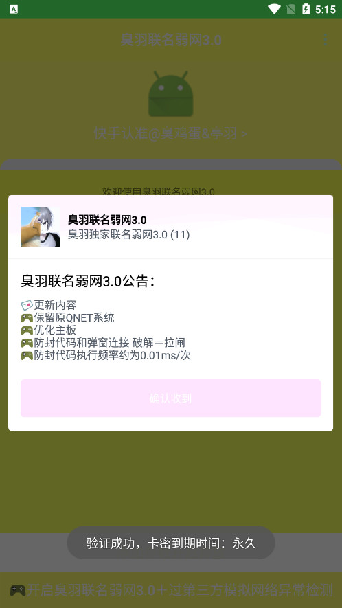 臭羽联名弱网3.0版本全网独家!配备无敌过第三方模拟网络异常.检测,修复拉回、无网等已知BUG,祝所有臭羽联名弱网3.0用户玩的开心!