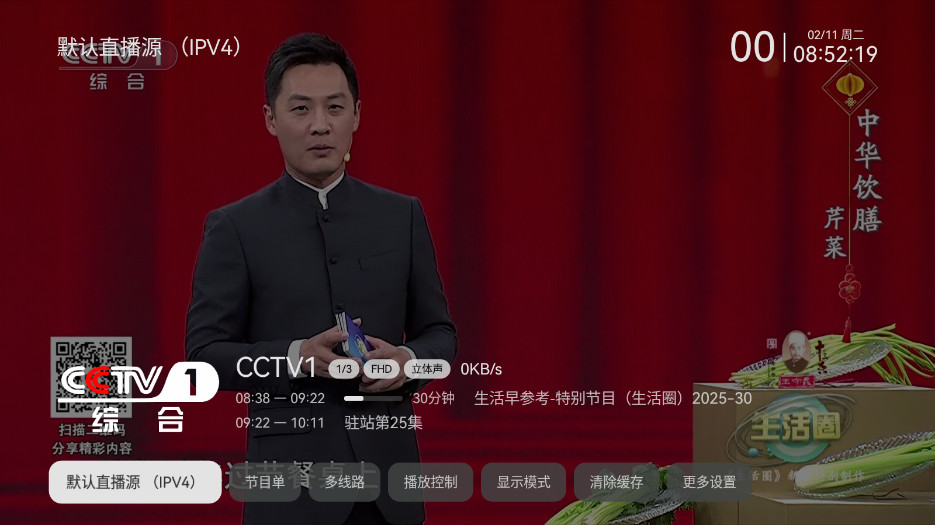 2、如果想要知道当前观看直播的节目单内容具体详情,可通过点击底部区域【节目单】,来查看各个时间段的播放安排。