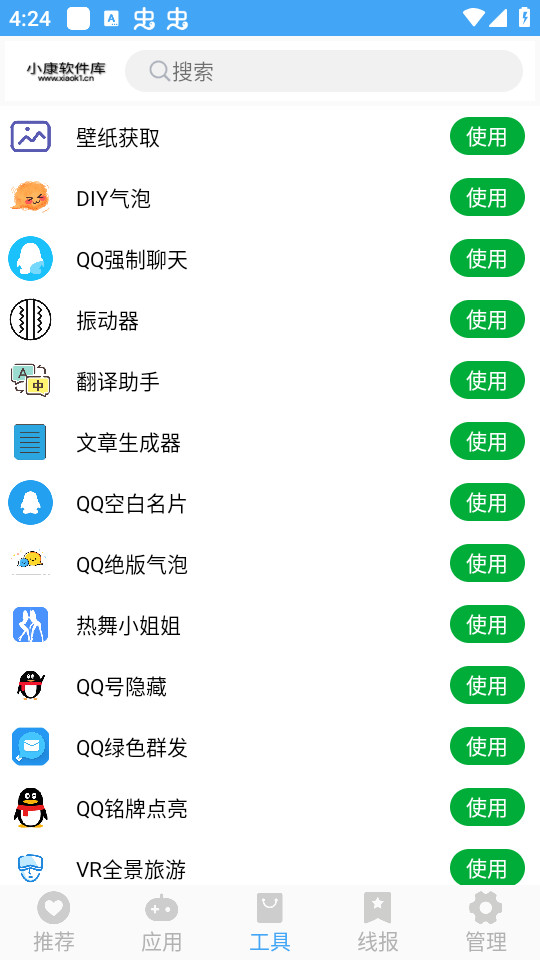 小康软件库,内置丰富的软件资源,包含了音乐类、小说类以及漫画类等,所有的软件资源都是免费的,还有丰富的在线工具可以直接使用,包括翻译工具、壁纸大全以及文章生成器等,所有的工具都是免费的,不断更新软件库和工具库。