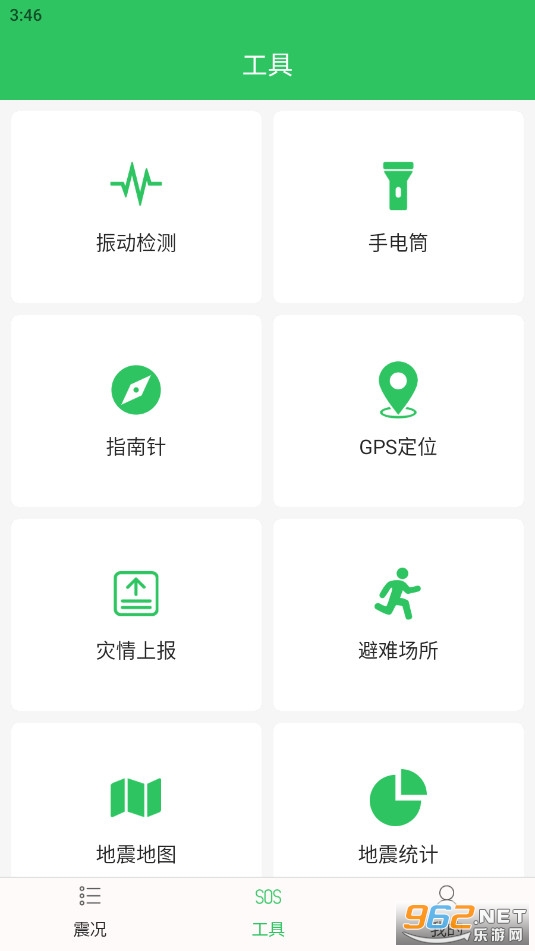 2、包含手电筒、指南针、GPS定位、查找避难场所等实用小工具;