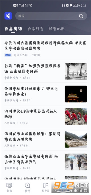 发布国家应急广播相关系统的内容,提供应急资讯、科普信息和预警地图