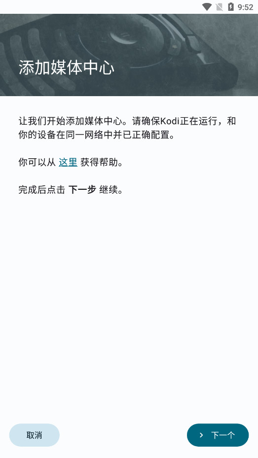 手机打开Kore,添加媒体中心。扫描局域网的Kodi,点击添加。