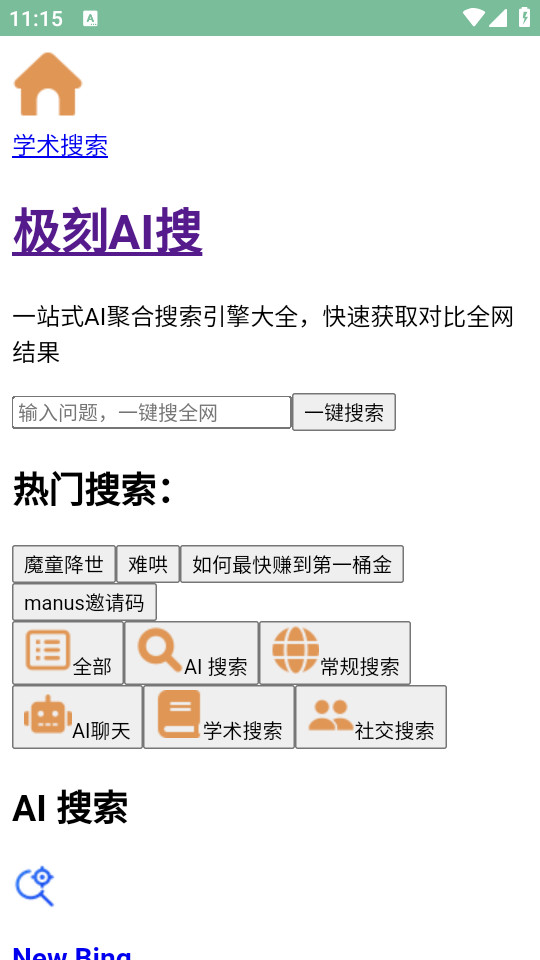 下载安装并打开极刻ai搜app,输入你需要搜索的内容,点击一键搜索