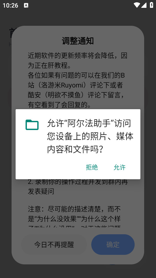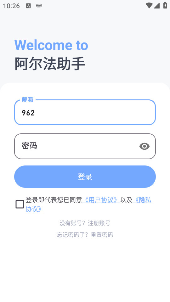 下载安装并打开阿尔法助手app,不断点击同意并继续