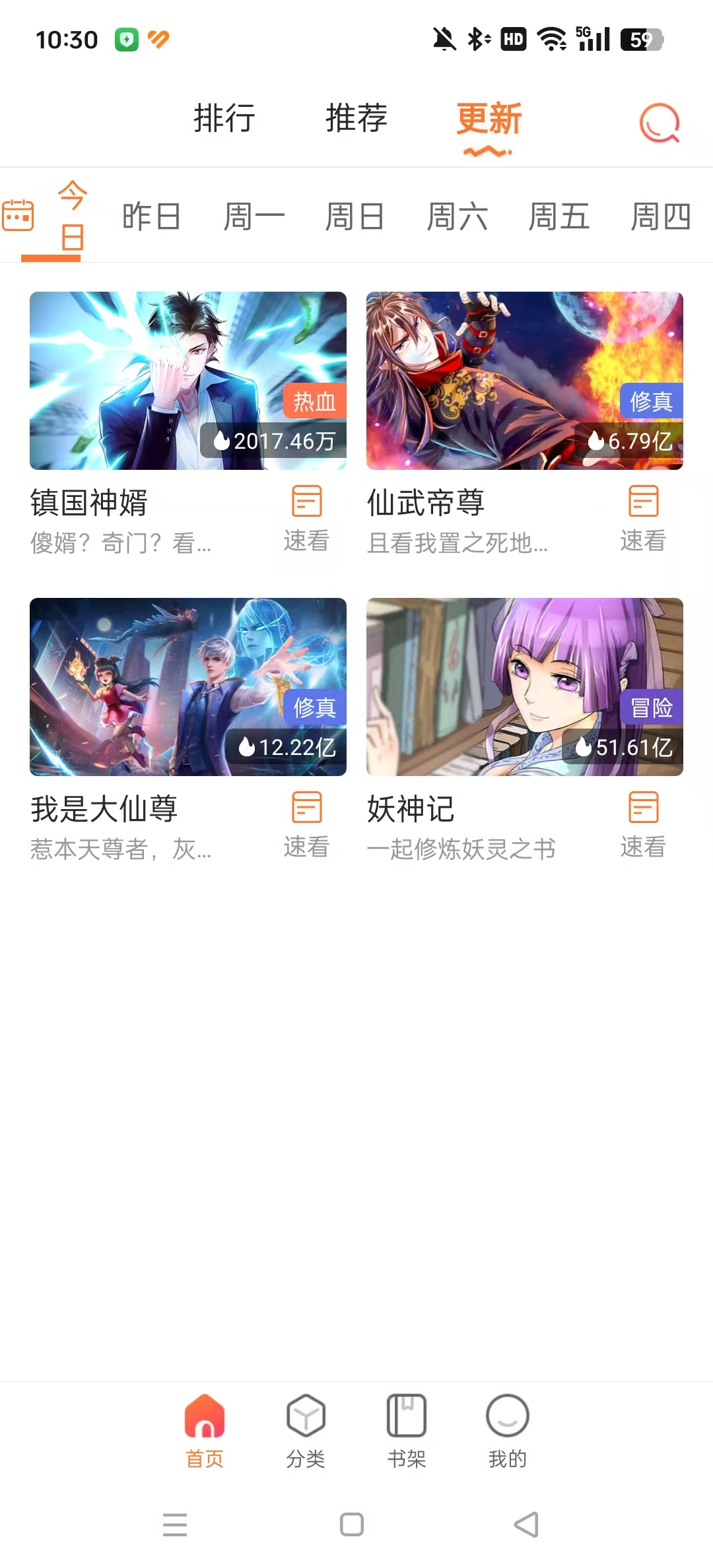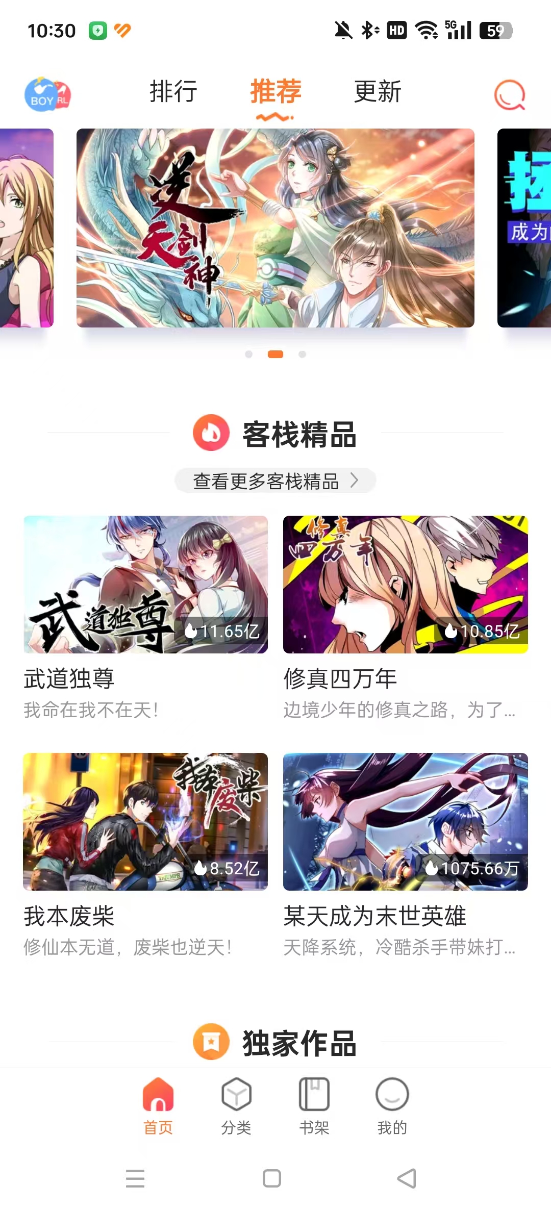漫客栈HD:以正版授权漫画为主,包含更多独家资源(如《星武神诀》《武神主宰》),更新速度更快(日更)。