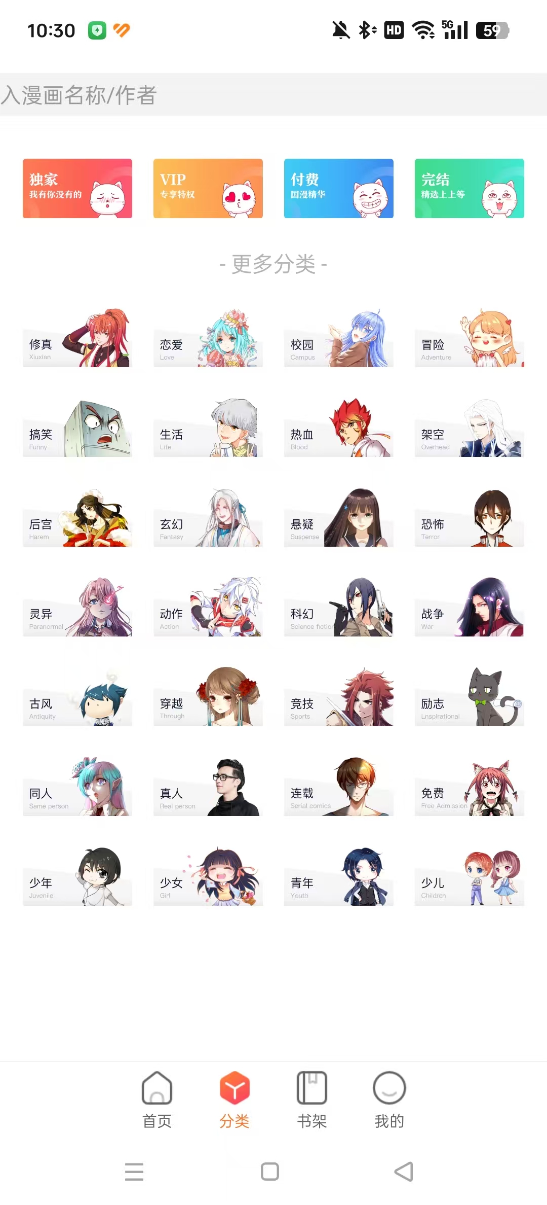 分类细化:漫画分类更精细,如新增“霸总”“豪门”“真人”等细分标签。