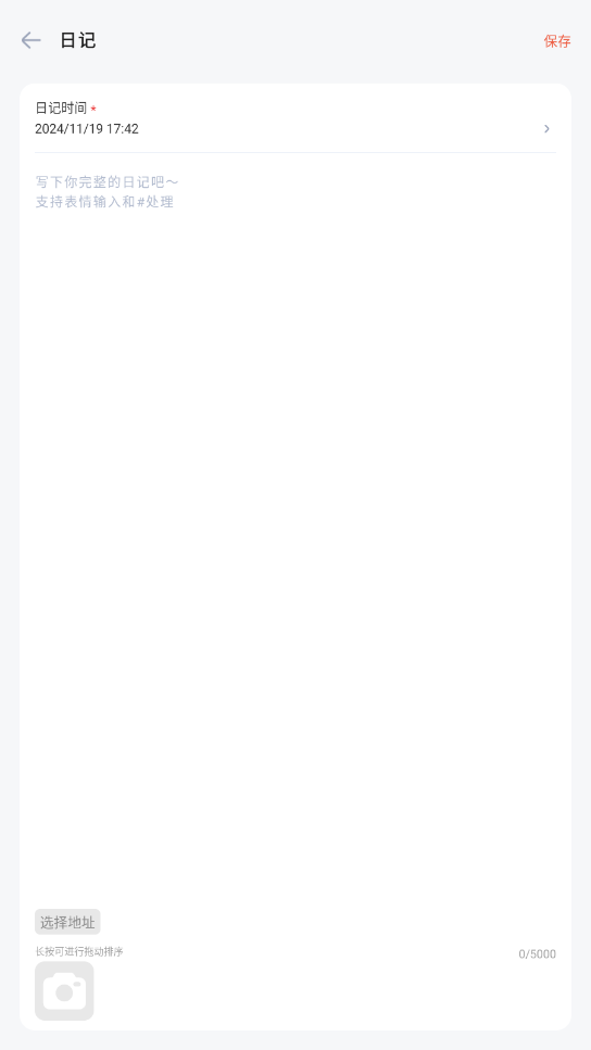 输入日记内容,点击右上角保存