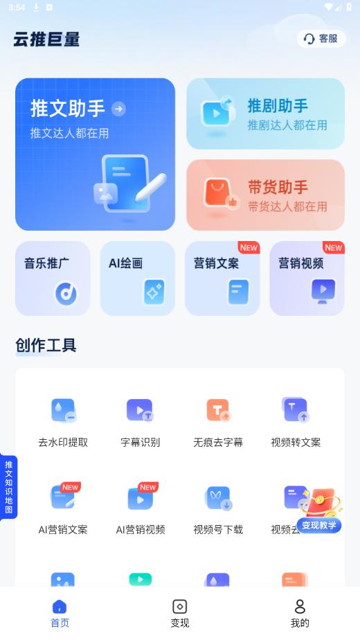 《云推巨量app》是一款提供小说推文、生活权益和影票达人创作工具的一站式平台。用户可以在平台上创作和发布自己的小说、推文或影评,并且通过变现功能实现收益。无论你是想成为一名作家、分享生活经验还是喜欢分享电影观后感,云推巨量app都能满足你的需求。它提供了简洁易用的创作工具、强大的社区互动功能以及多种变现方式,让用户可以轻松实现自己的创作梦想和变现目标。