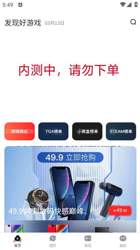 1、进入首页,可以查看游戏榜单内容