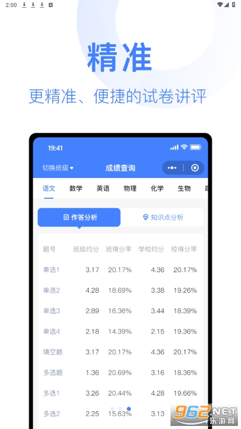 更高效舒适的阅卷体验,更全面维多的数据分析,更精准便捷的试卷讲评。