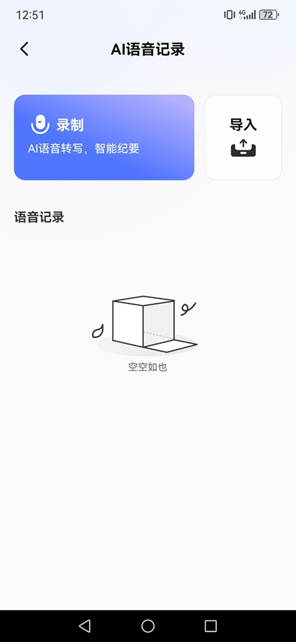 点击【录制】即可录制音频进行语音转写,也可以导入音频来转文字
