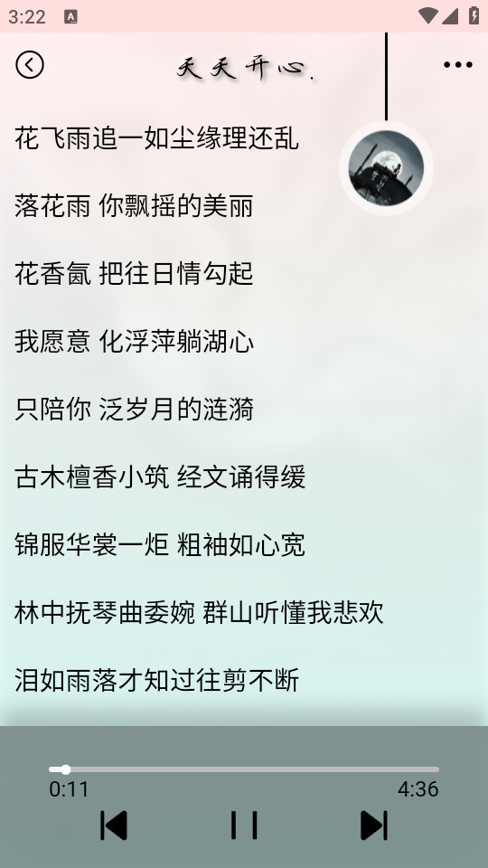 简洁易用:界面设计简洁明了,易于上手。用户还可以自定义主题歌词颜色,提供个性化的视觉体验。
