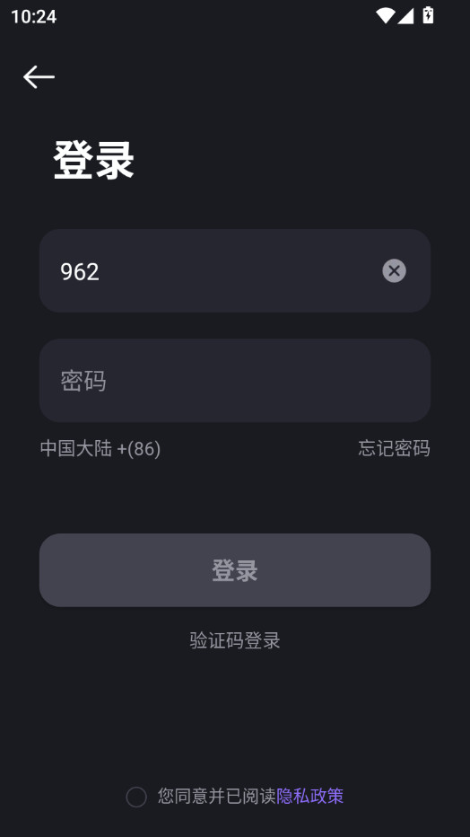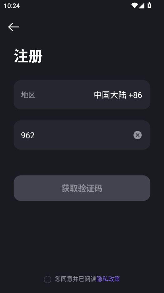 输入手机号,勾选隐私政策,点击获取验证码就可以了