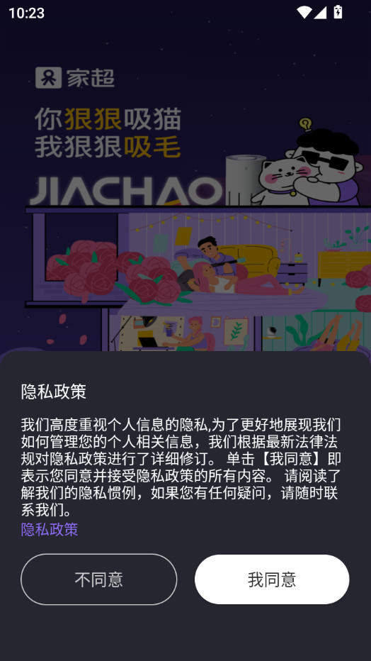 下载安装并打开家超app,点击我同意
