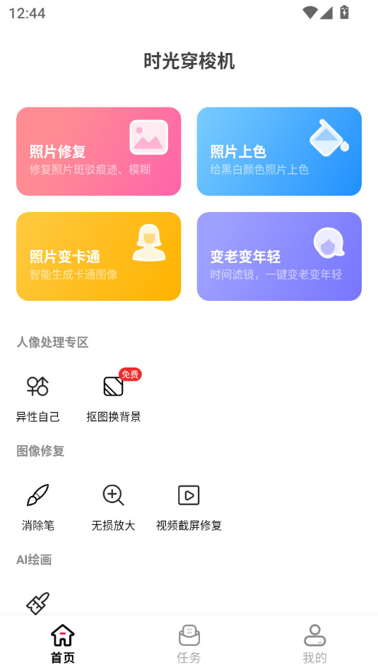 全栈时光穿梭机是一款多功能的照片处理应用,拥有照片修复、照片上色、变老变年轻特效、漫画脸、异性自己、照片风格化、AI绘图、AI漫画、颜值评估等等各种特色,趣味十足,百变新玩法,让你爱不释手。