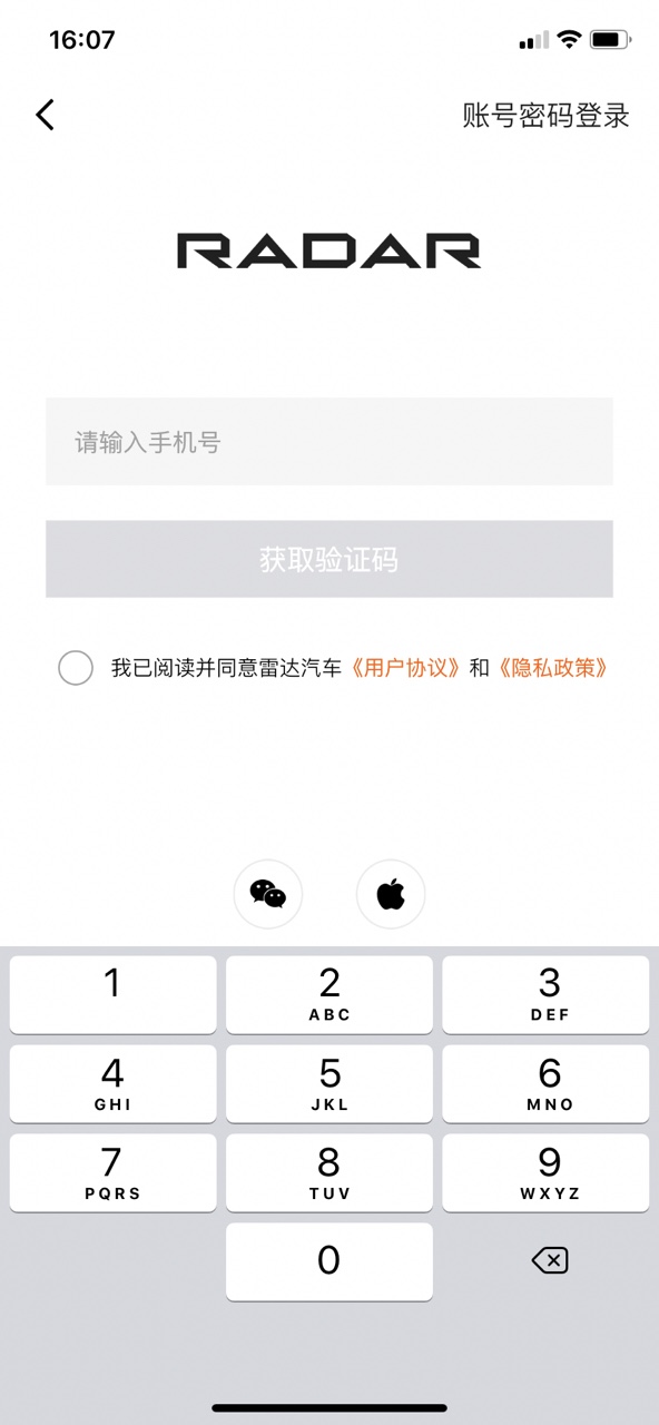 输入手机号,验证码,点击登陆