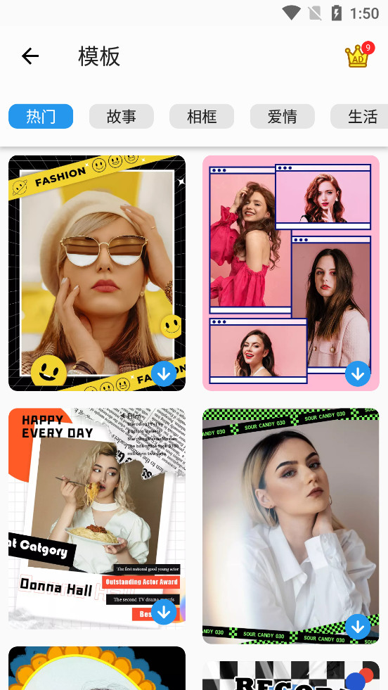 * 只需选择几张图片,照片编辑器会立即将它们重新混合成一个很酷的照片拼贴,为Instagram用户提供大量免费的预设模板和布局。