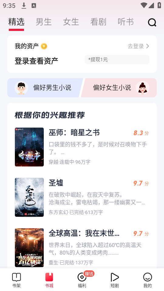 进入之后可以在书架书城找你喜欢的小说,也可以根据你喜好的分类进行寻找